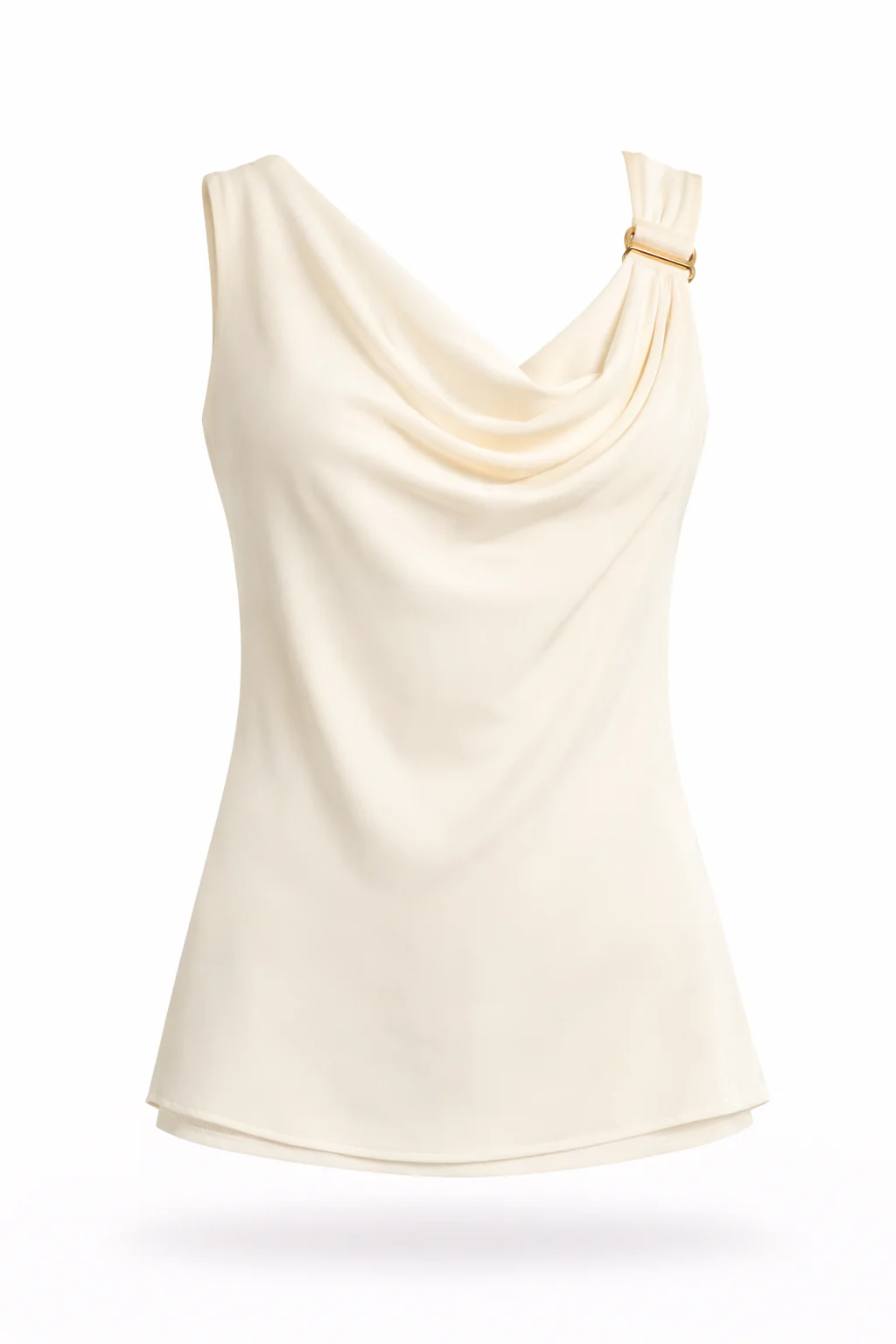 Top scollo cappuccio con accessorio. Tessuto leggero e fluido. Design dritto. Scollo a cappuccio morbido. Senza maniche. Vestibilità regolare. Accessorio decorativo applicato. Linea elegante e femminile.