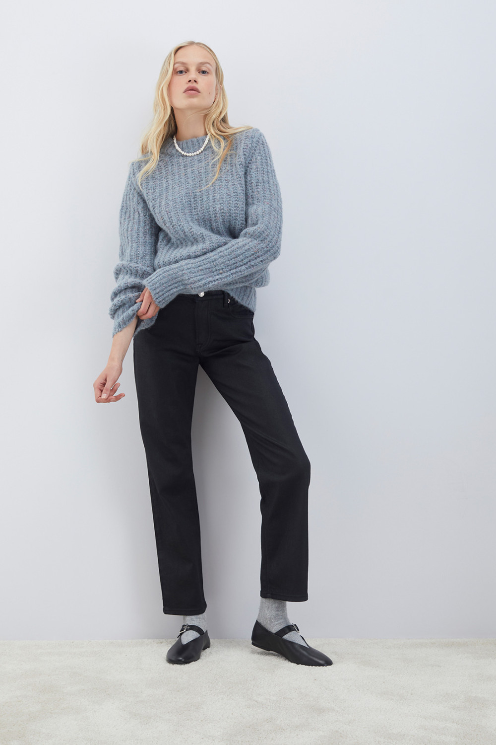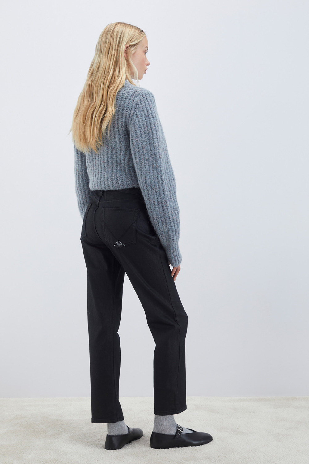 Jeans Sofia in denim Biker con lavaggio scuro. Vita media con passanti. Chiusura con bottoni logati a vista. Due tasche sul fronte e due tasche sul retro con label Roy Roger’s applicata. Regular fit. COMPOSIZIONE: 99% COTONE 1% ELASTAN.